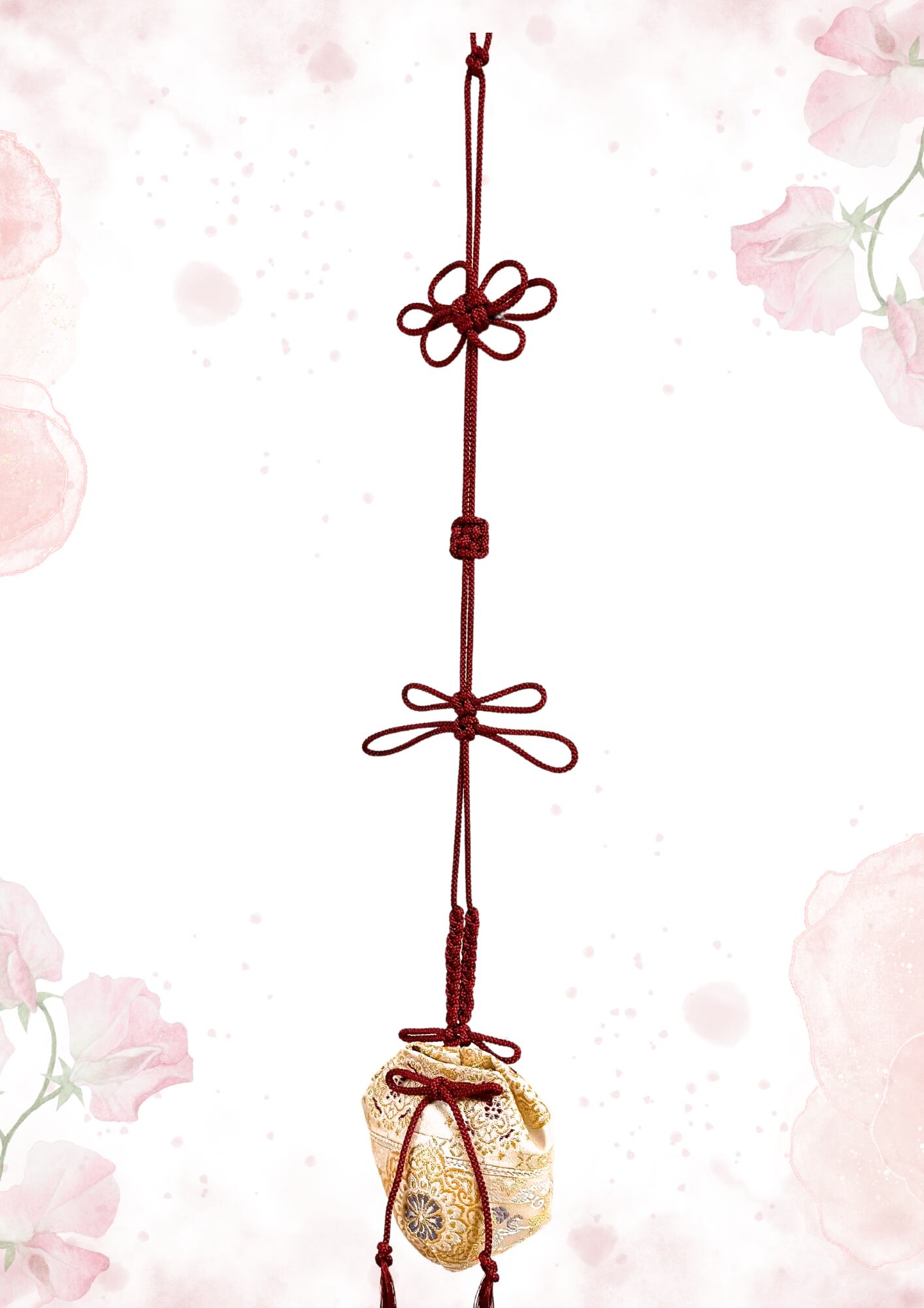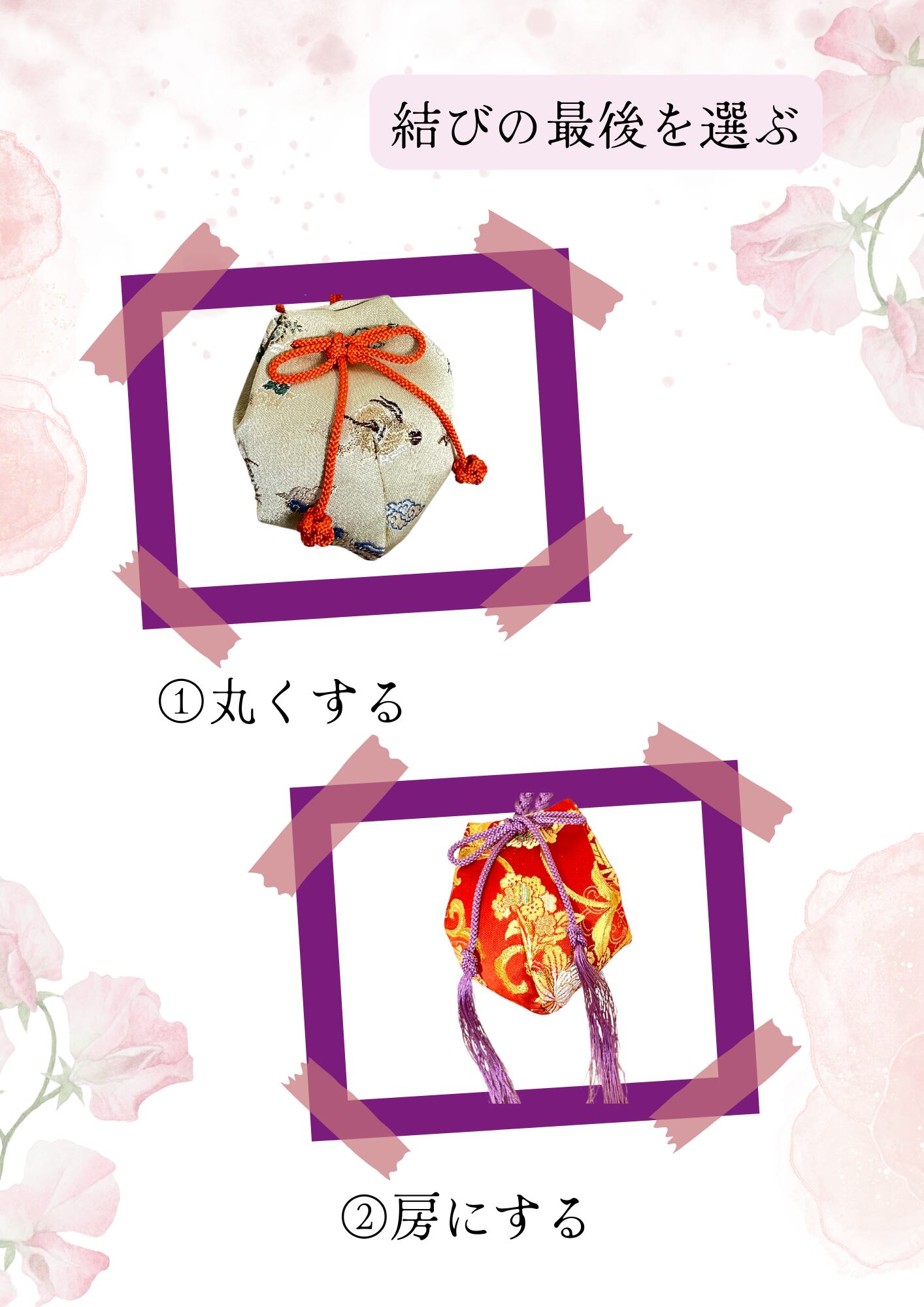 ・途中の結び:①総角結び もしくは ②華鬘結び